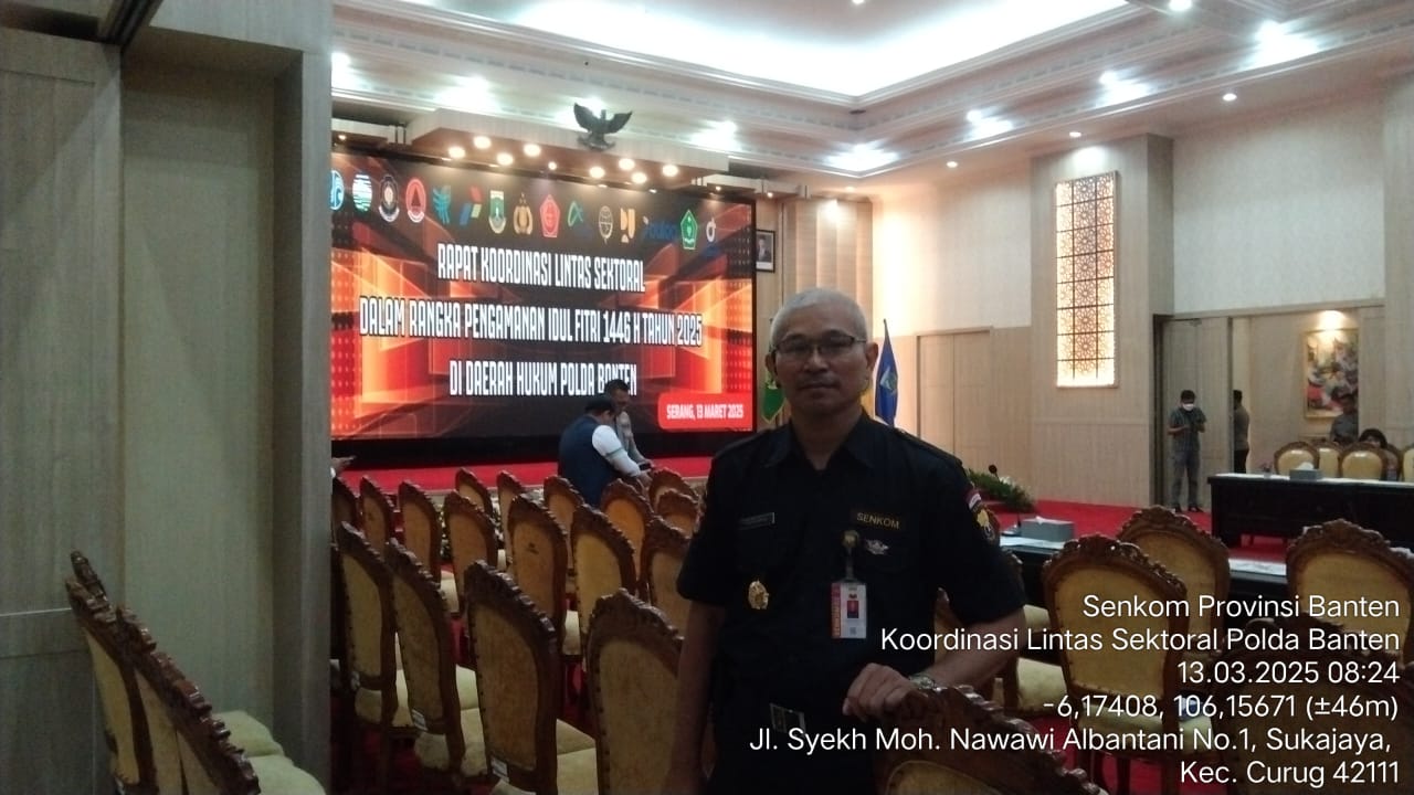 Serang (14/3) – Ketua Senkom Mitra Polri Provinsi Banten, Yunando Prasetyo menghadiri undangan Kapolda Banten dalam rangka Rapat Koordinasi (Rakor) Lintas Sektoral Operasi Ketupat Maung Tahun 2025 dengan tema “Mewujudkan Kamtibmas dan Kamsiltibcarlantas yang kondusif serta menjamin keamanan masyarakat dalam menjalankan merayakan lebaran 2025” Diwilayah Pendopo Gubernur Provinsi Banten, pada Kamis (13/3/2025).
